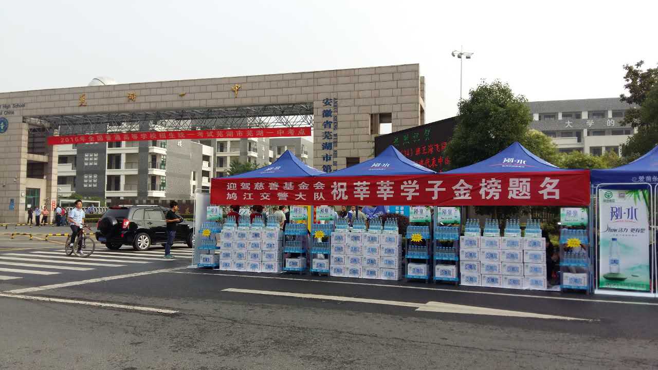 2016年高考期间,迎驾集团慈善基金会携手剐水,为广大考生送清凉,所有考生凭准考证即可在各考场外剐水爱心服务站免费领取剐水一瓶!迎驾慈善基金会,祝愿莘莘学子旗开得胜,金榜题名!