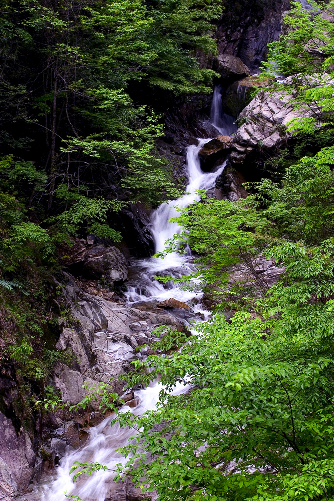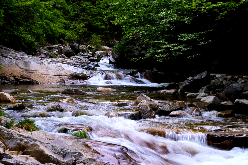 大别山白马尖主峰海拔1700多米,常年云雾缭绕,恍如仙境。高山野岭上密布着毛细血管一样的清清山泉,它们漫过草地,抚过山石,渗过竹根,在山谷中汇聚,形成一个个流泉飞瀑、湍流绿潭。