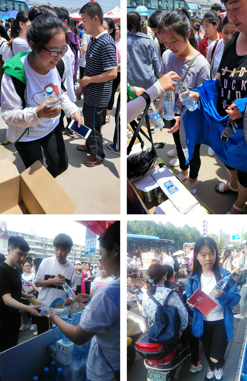 本次基金会购买了近20万瓶剐水,在安徽、江苏、湖北等地的100多个考点推出“助力高考送爱心”活动,为参考的莘莘学子及焦急等待的家长送去竹根剐水,让清冽甘甜剐水消除炎炎夏日的热浪,给考生和家长带来一份清凉!