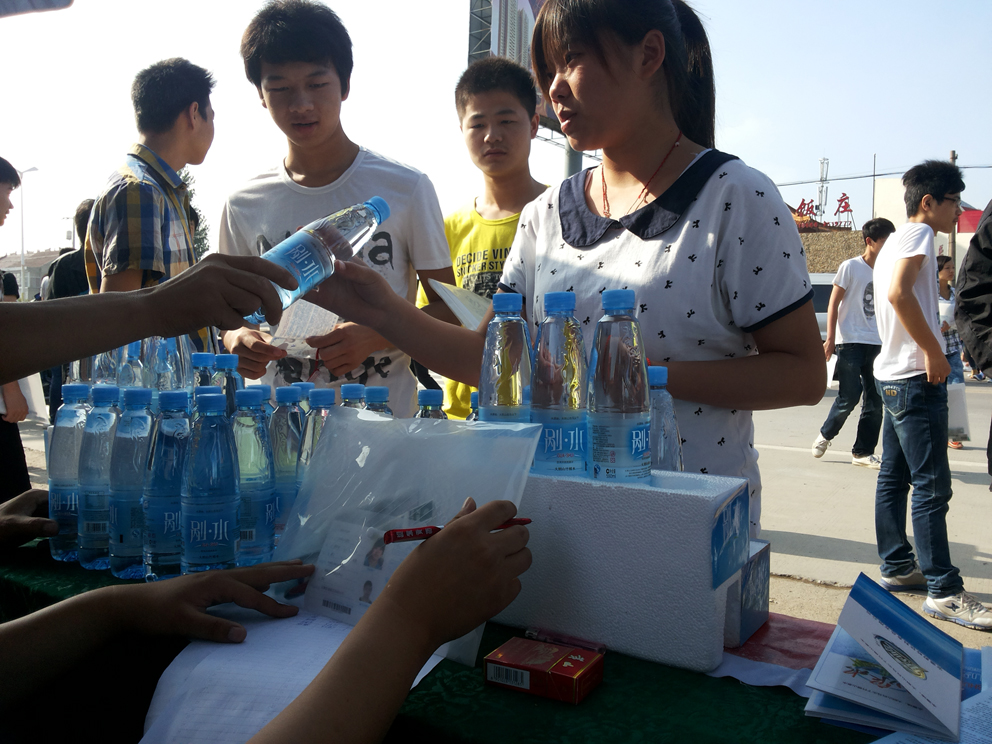 在考场外,我们将一瓶瓶剐水送到考生和家长手中,叮嘱家长要注意休息,并衷心祝福考生“十年寒窗苦读、一举成名天下”,所有的家长也都对我们此次公益行为表示了由衷的赞赏和感谢,考场外的两天时间里,家长们都在谈论着各自孩子的情况,脸上挂满的笑容暗示着对自己孩子的那份自信以及肯定。我们的工作人员不但给家长送上爱心剐水,更陪着家长们聊天解闷,谈一谈孩子,聊一聊学习,缓解了家长们的紧张之情。